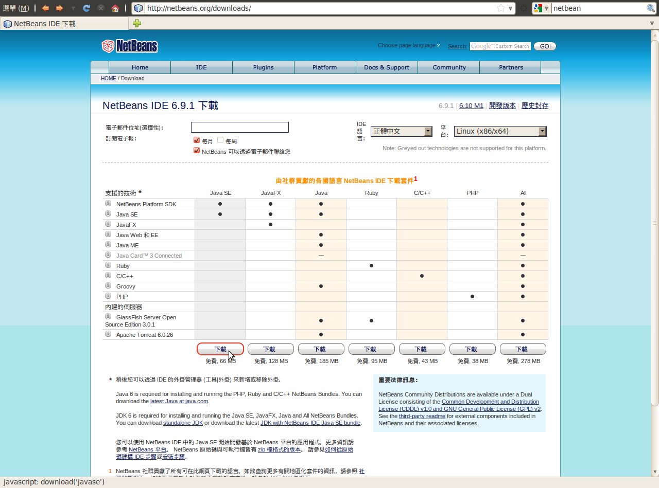 步驟二:安裝 Netbean IDE 6.9.1 正體中文版